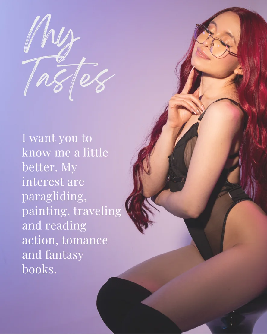 I’m a woman who enjoys art in all its forms: I lose myself in colors and brushes when I paint, I get inspired by the pages of romantic and erotic literature, and I let the music take over when I dance. I love traveling and discovering new cultures, because every experience awakens something different in me. I’m a student, but also an eternal learner of pleasure and of my own body. I’m fascinated by exploring, letting my senses guide me, and experiencing everything that takes me to the highest peak of ecstasy. Here you’ll find an intimate and passionate space, where you can discover me and let yourself be carried away with me.